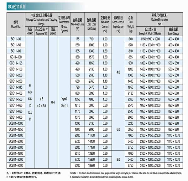Note: You can provide operating under special environmental conditions of the transformer according to user requirements.