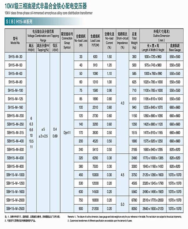 Note: You can provide operating under special environmental conditions of the transformer according to user requirements.