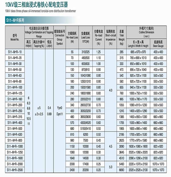S11-M.R系列10kV級三相油浸式卷鐵心